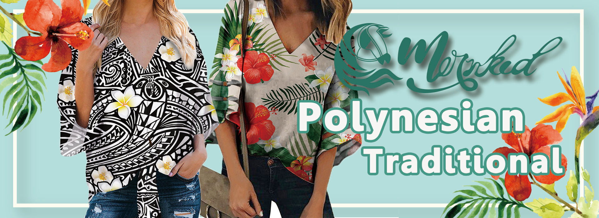 MORNWORLD Polynesian Style V-Neck Dress - Casual Island Wear and Men Shirts